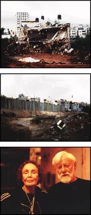 Mein deutscher Freund in Jerusalem ist Entwicklungshelfer für Palästina und hat einen offiziellen Dienstpaß. Jeden Tag muß er mit seinem Auto vorbei an den Checkpoints. Ich riskierte mit ihm den Übergang in die Westbank, da ich unbedingt nach Ramallah wollte, um dort das noch immer zerstörte Hauptquartier von Arafat zu sehen und am besten gleich ein Interview mit Photos von ihm zu machen. Deshalb hatte ich ja seine Lieblingsmusik (Schuberts "Die Unvollendete") besorgt und schleppte die Mozartkugeln als symbolisch-weihnachtliche Friedensmunition mit mir herum.